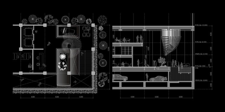 空間に解き放たれた瓦は,重力が織りなす懸垂線(カテナリー曲線)の回転体に沿って3次元上に配置され,さらにその仮想曲面上に配置された瓦一つ一つが3次元のオブジェクトとして存在感を放つことで,空間全体における有機的なダイナミズムと個々の要素が見せる繊細な表情とが統合された6次元の造形美を手に入れることができる.